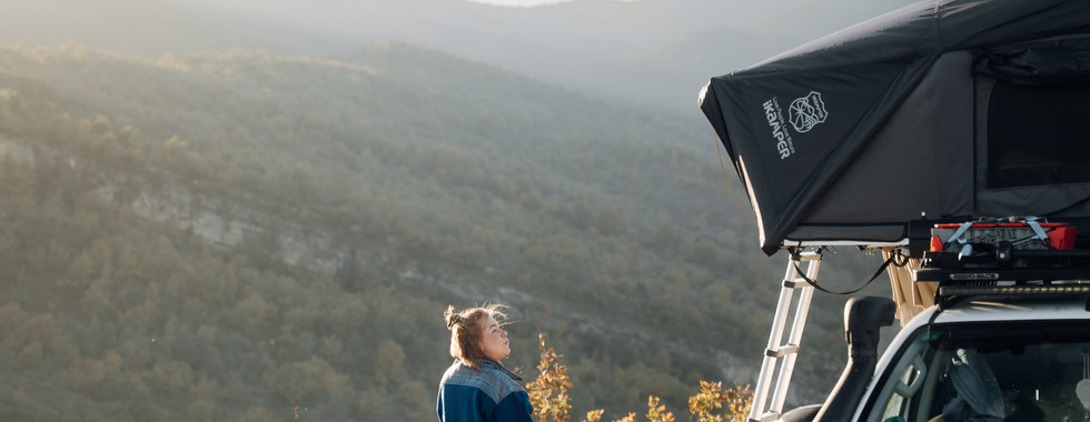 Wir halten mehrfach an, bleiben stehen, schauen. Die Kombination aus Bewegung, Licht und Nebel verleiht der Umgebung etwas Unwirkliches und macht selbst die einfachen Abschnitte der Fahrt besonders. Am Nachmittag finden wir schließlich einen Platz, der sofort passt. Hoch gelegen, mit weitem Blick über die Landschaft und genug Raum, um einfach da zu sein. Kein Programm, kein Zeitdruck. Wir bauen unser Lager auf, kochen draußen und schauen zu, wie das Licht langsam weicher wird.